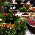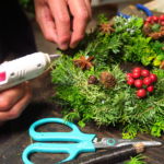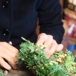 年々リースというものが日本でも馴染んできて、クリスマスともなれば花店はもちろんのこと、雑貨屋さんから料品店まであらゆる場所で売られているのを目にします。しかし私は思うのですが、リースの醍醐味は、飾るよりも「作ること」。市販のリースは飾ればもちろん華やぎますが、少し大変だけど(難しいというわけではないのですが、多少根気が要ります)少しずつ円ができていく驚きや、完成した時の達成感は何物にも代えられません。クリスマス感いっぱいの、針葉樹の香りに包まれながらの時間も、手作りならではです。