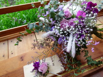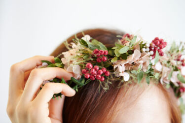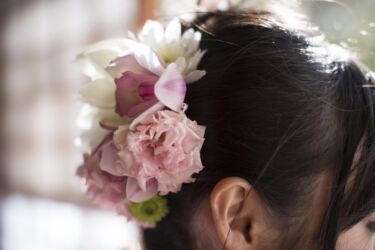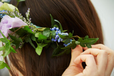 フレッシュなお花、またはドライフラワーなどで、髪飾りをお作りさせていただきます。