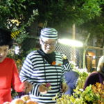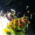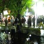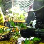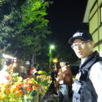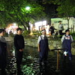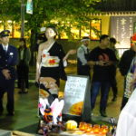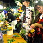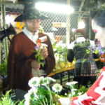 いつもの花いけ部の要領で、みんなで集まってハロウィンのお花をいけて、高瀬川に飾ります。そして、木屋町に集うすべての人が気持ちよくハロウィンナイトを楽しめるように、中京署のみなさまとお掃除パトロールをするという イベントです。